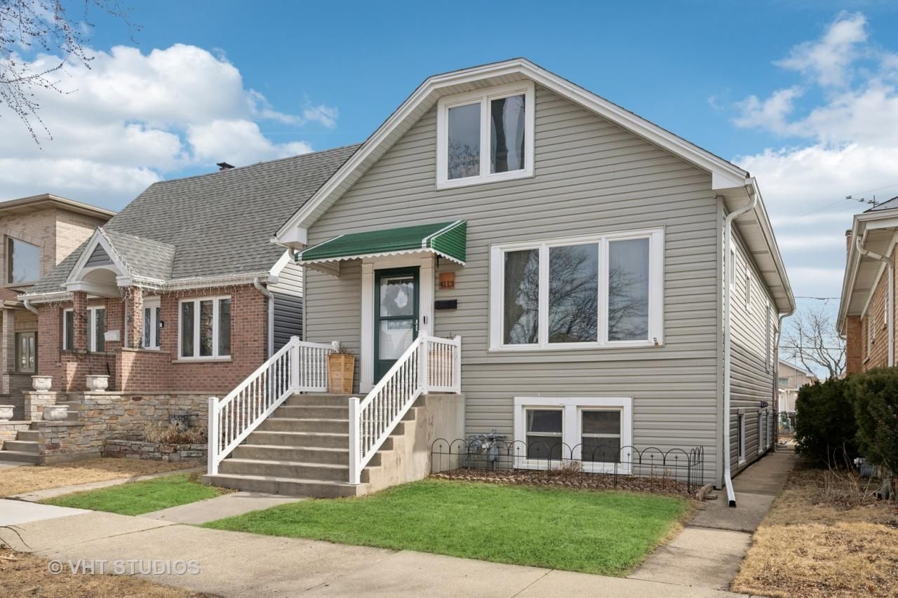 Beautifully maintained with newer updated kitchen with stainless steel appliances, granite counter tops, large island with extra storage, all open to oversized eating area which overlooks large deck and fenced in back yard ~ perfect to enjoy everyday or for entertaining! Back entrance foyer, offers great extra area for cubby holes for storage, coats and shoes. Newer wood laminate flooring through out. Recently updated stylish upstair bath. Roof and siding about 10 years old, windows, newer deck, front porch and railing around 2008. Tons of storage, finished basement has dry bar and huge recreation room, plus extra bedroom and easy access to outside. Conveniently close to Harlem and Irving and just a short to distance to all schools! Some photos virtually staged