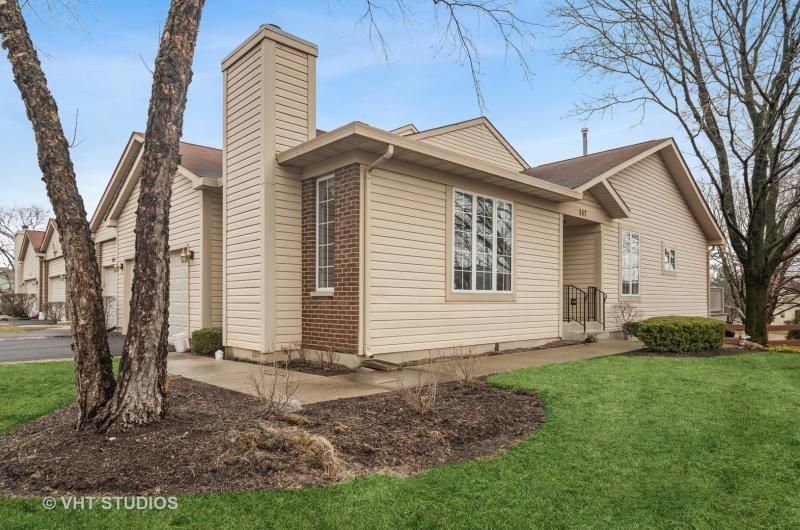 Super clean, open, light and bright first floor ranch home in highly sought after Parkside! Private end unit with walk out basement. Split entrance showcasing fireplace in living room and a spacious formal dining room. Kitchen boast quality cabinets offering plenty of cabinet space and granite counter tops. Enjoy nature from your large slider door to your deck while you relax in your breakfast room in the kitchen. Huge master bedroom with walk in closet adjacent to a gorgeous luxury bath with two separate vanities and sinks and large soaker tub and separate shower. Walk out basement has a cozy fireplace in family room, bedroom and full bath and storage room with abundance storage space!! Community has walking trails, mature trees and all the conveniences to shopping, expressways, and only minutes away from metra and downtown Palatine! Maintained to perfection!!